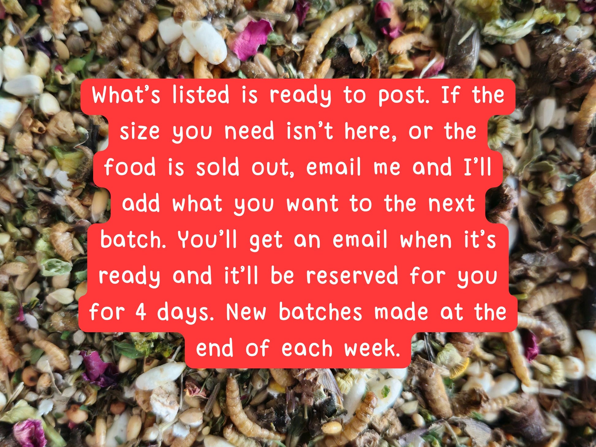 What you see is what’s ready on the shelf, when it’s gone, it’s gone until the next batch. New batches are made weekly. Need a specific size? Email me and I’ll add it to the next batch. Your hamster food mix will be reserved for 4 days once ready.