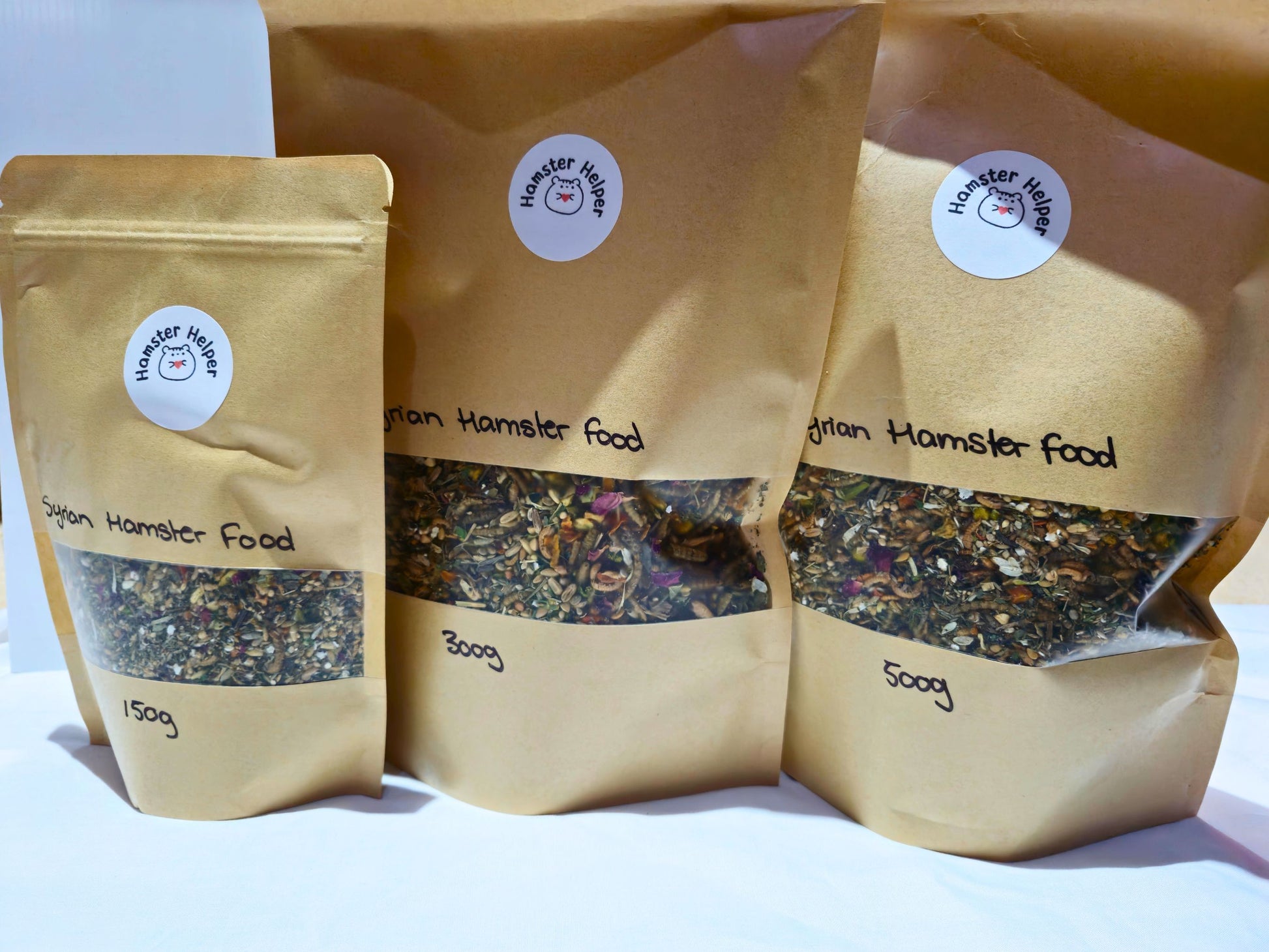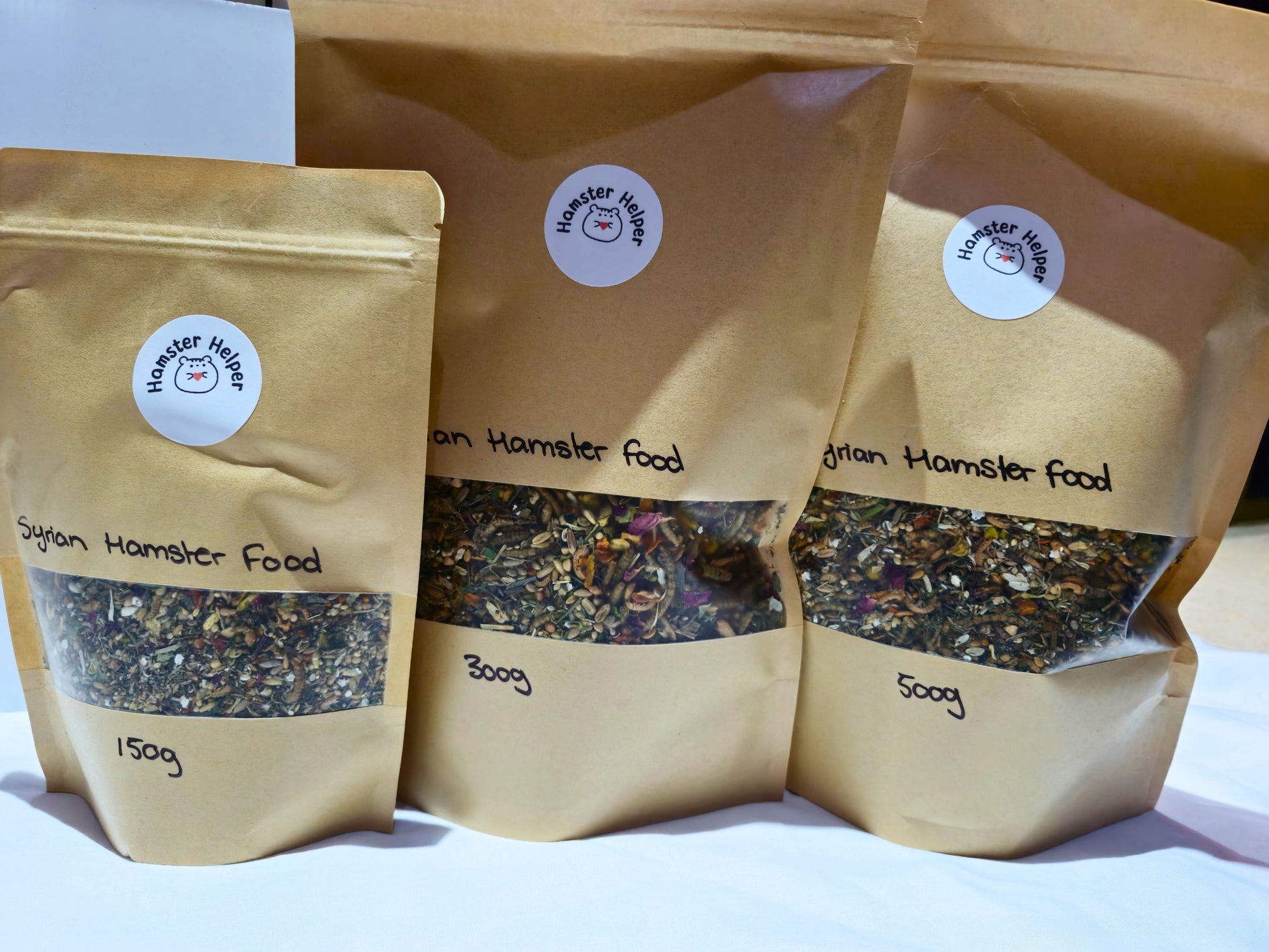 This isn’t your average pet shop food. It’s a lovingly balanced mix, handmade in small, weighted batches to ensure consistent nutritional values every time. Each bag is bursting with thoughtfully chosen ingredients to match the natural diet of Syrian hamsters higher in veg and grains, but still offering variety, scent, texture, and enrichment.