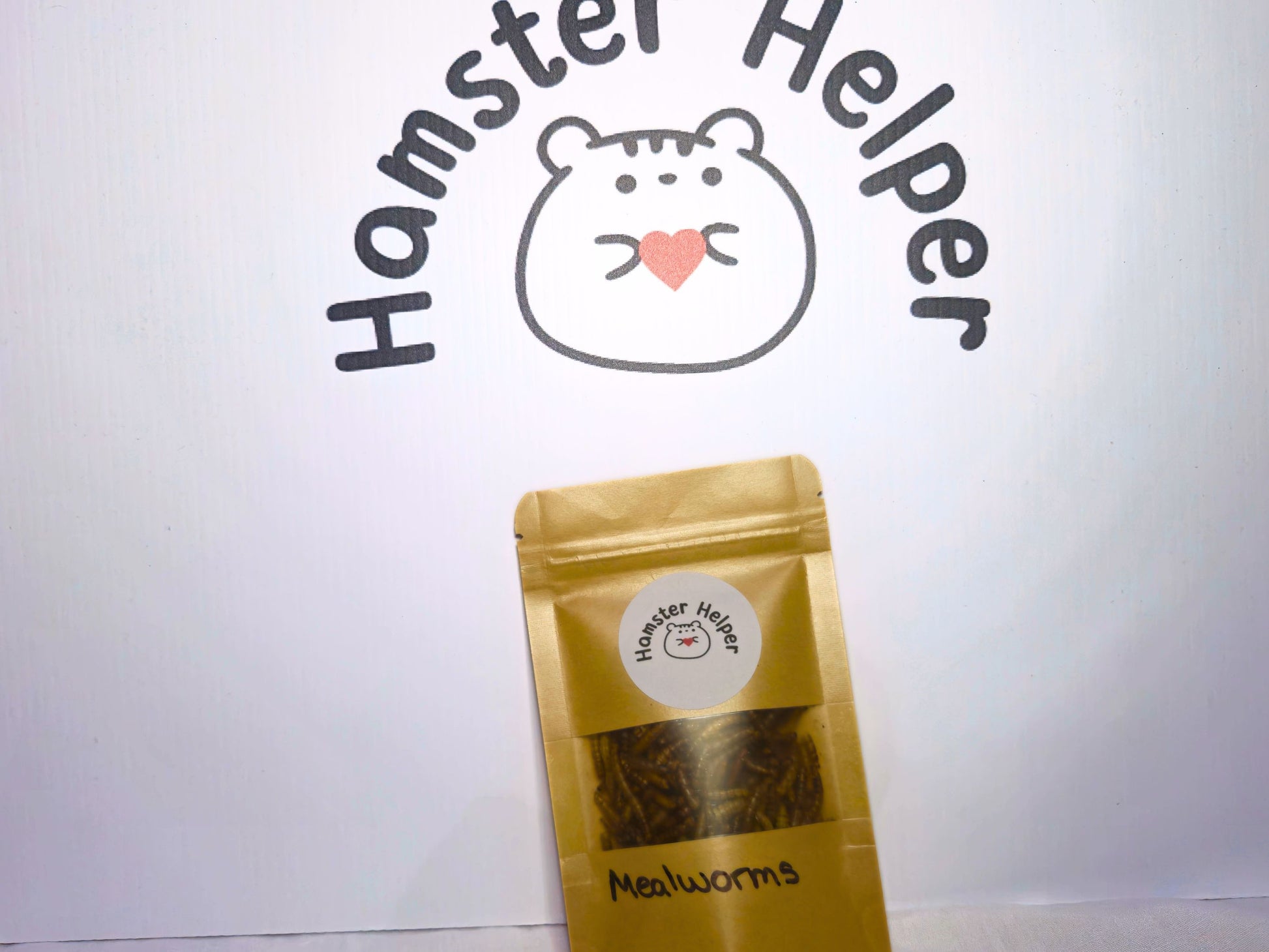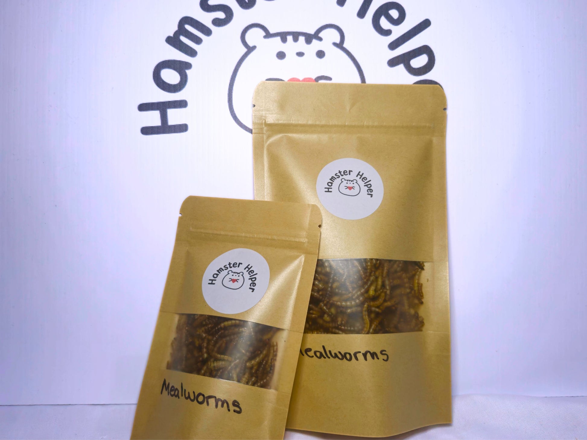 10g or 30g of hamster safe meal worms. These meal worms have already been frozen at -20°c for 48+ hours so you can use them straight out of the bag.